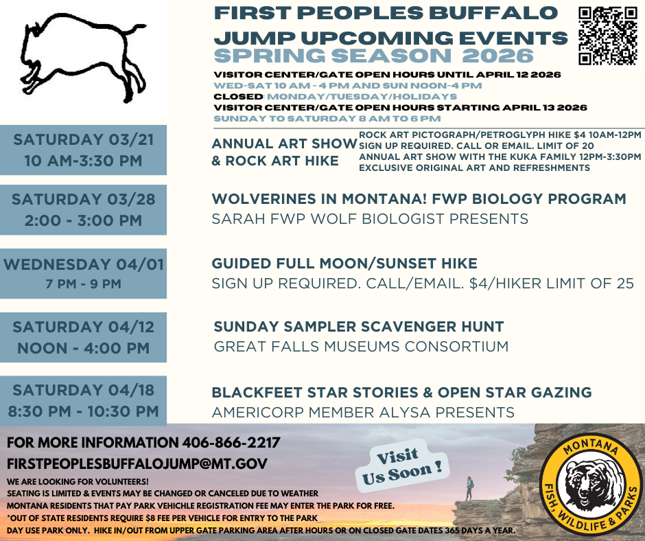 Montana Fish, Wildlife & Parks is building on previous planning efforts to create a development plan for managing recreation infrastructure at First Peoples Buffalo Jump State Park. First Peoples Buffalo Jump is an archaeological site with possibly the largest bison cliff jump in North America and is designated as a National Historic Landmark. The historic and cultural resources, wildlife habitat, and unique opportunities for outdoor recreation will all be part of what the planning process and final planning document considers.