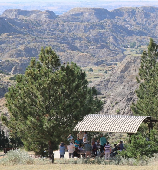 The family, some of whom are based in Glendive, donated $70,000 for the project. Montana Fish, Wildlife & Parks contributed $15,000 and significant staff time. The idea for a shelter came about around 2019, after the parents had passed. The siblings – Mike, Ann, Mary, Kevin and Rick - had many fond memories of frequent visits to Makoshika, including fossil hunting, campouts and coasting down the switchbacks during Sunday drives. They wanted a way to remember their parents that also benefited the state park and future generations.