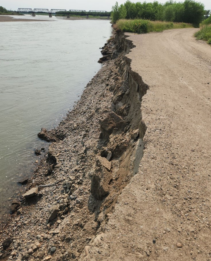 MILES CITY – The access road to the Black Bridge Fishing Access Site is experiencing severe undercutting following high river flows this season, creating a safety concern. FWP has limited the site to walk-in traffic and erected barriers and signage several times, but users continue to drive around them or remove them on an almost daily basis.