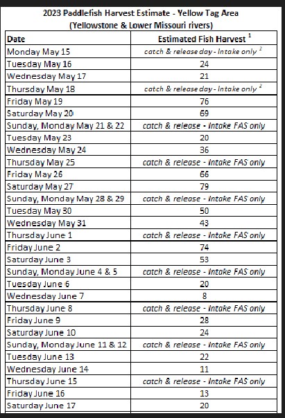 Following are additional details and information summarizing the 2023 yellow tag paddlefish season: