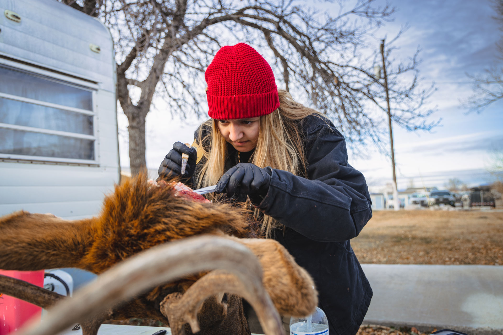The job of a wildlife technician who samples dead animals for chronic wasting disease (CWD) isn’t always a glamorous one. But Bonney says she likes it. She arrives at her job site, which is an old Globestar camper with a folding table outside, before 8 each morning, takes out her tools and waits for the first hunter of the day.